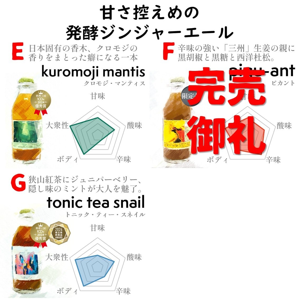 狭山紅茶にジンの蒸留で使用されたジュニパーベリーを加え、一緒に発酵させました。隠し味のミントが後引く、大人の発酵ジンジャーエール。